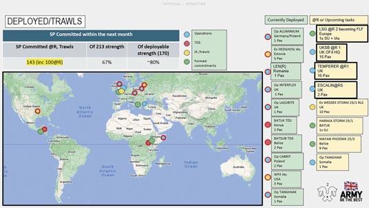 So far 2025 has been an extremely busy period for the Unit, seeing 72% committed to either trawls, Temporary Duty Staff, EtR, SET tasks, or, at Readiness (@R), which includes the United Kingdom Standby Battalion (UKSB) HQ, Op TEMPERER, Op ESCALIN and NATO’s Forward Land Forces (FLF); whilst being