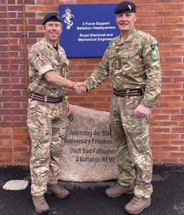 Formal hand-over from Lt Col Andy Lowe to Lt Col James Hill of 2 FS Bn REME