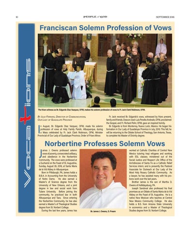 n August, Br. Edgardo Diaz Vazquez, OFM, made his solemn profession of vows at Holy Family Parish, Albuquerque, during a Mass celebrated by Fr. Jack Clark Robinson, OFM, Minister Provincial of Our Lady of Guadalupe Province, Order of Friars Minor.