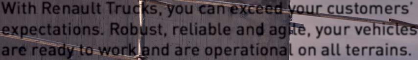 With Renault Trucks, you can exceed your customers’ expectations. Robust, reliable and agile, your vehicles are ready to work and are operational on all terrains.