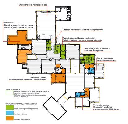 • Délocalisation temporaire de classes : à l’intérieur et à l’extérieur des bâtiments, impliquant un partage des espaces et un rangement en amont.