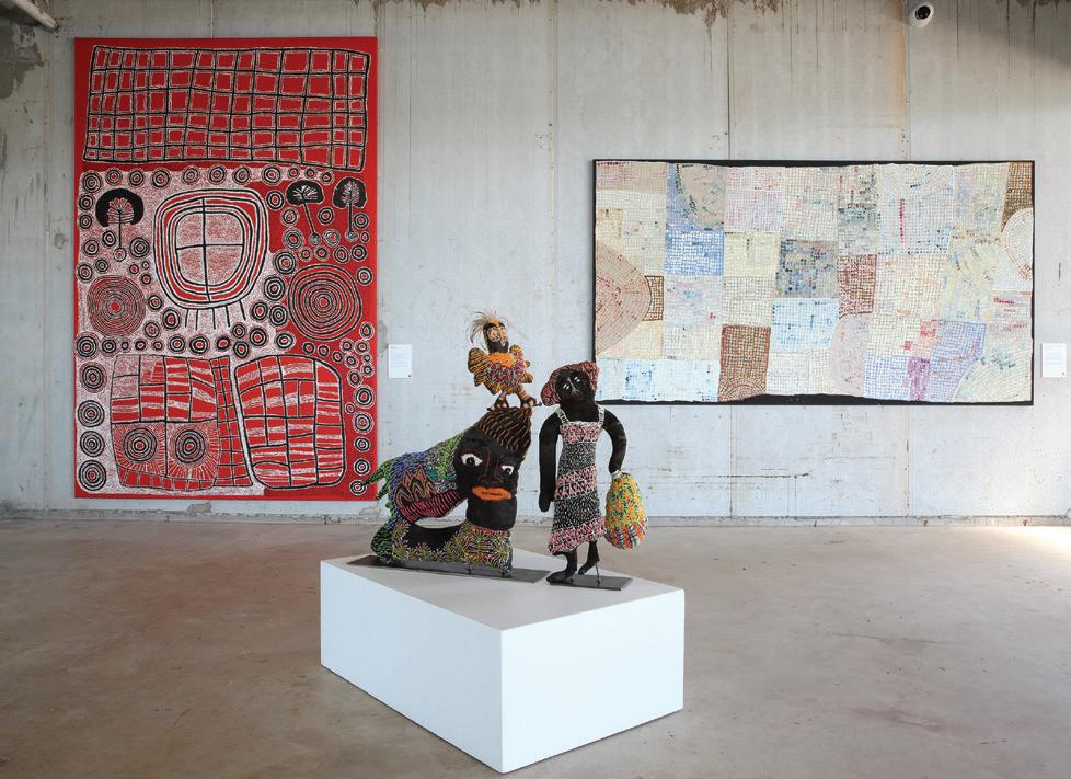Showcasing a powerful selection of Tiwi works, the exhibition features paintings and carvings, rich in local ochres and iconic motifs such as