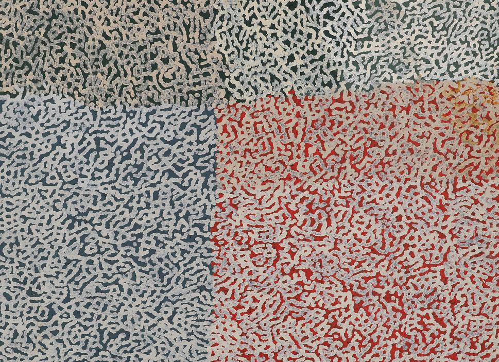 Elizabeth Ngwarraye Bonney, 'My Grandmother's Country' (detail), 2024, acrylic on heavy linen, 122x76cm. Image courtesy Artists of Ampilatwatja