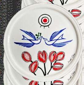 Todas as porcelanas trazem pássaros em meio a uma vegetação rupestre Não pássaros padrões, de penas e asas, mas pássaros estilizados pelo traço litóglifo Quanto ao movimento que pressupõem, percebemos que realizam um deslocamento