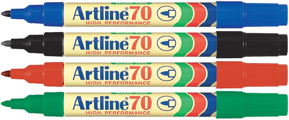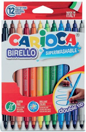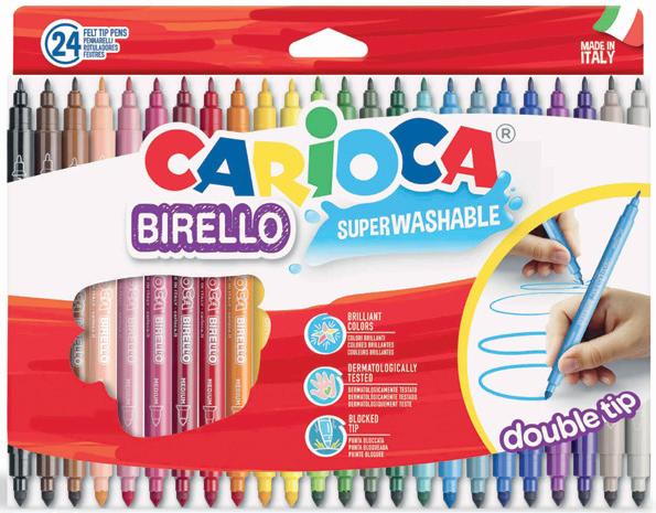 Rotuladores escolares con dos tipos de punta. La punta más gruesa es de 4,7 mm de diámetro y la más fina de 2,6 mm. Superlavable, punta de fibra. La caja.