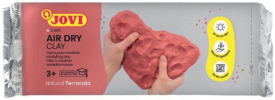 Pasta de modelar hecha con arcilla que se endurece al aire, secado natural en 24 horas. Adecuada para uso escolar o bellas artes. Se trabaja con facilidad y se puede pintar, barnizar, lijar, laminar, enrollar y cortar. Color terracota. El paquete.
