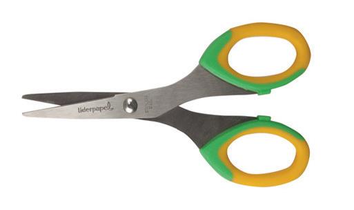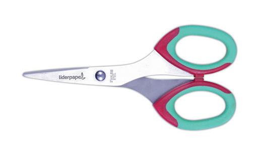 Tijera con mango extrasuave y hoja de acero inoxidable. Apta para uso doméstico, oficina y escolar. Colores surtidos. Longitud: 13,5 cm. La tijera.