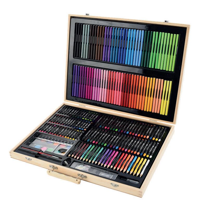 Conjunto de dibujo y coloración: elementos esenciales creativos para dibujar, colorear y hacer en cualquier momento y en cualquier lugar. Contenido: rotuladores de colores, lápices de colores, ceras de colores, colores de acuarelas, ceras blandas de colores, clips, lápiz, pincel, pegamento, goma, sacapuntas, tijera, regla, paleta y esponja. El set.