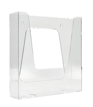 Portafolletos mural vertical. Fabricado en poliestireno ultratransparente de máxima calidad y resistencia. Fondo de cajetín de 40 (A5)-45 (A4) mm. Diseñado con hendidura frontal para un rápido acceso a los documentos y con agujeros traseros para facilitar su colocación en la pared. Color cristal transparente. Fabricado en España. Formato Din A4. Medidas: 23,5 x 24 x 5,5 cm. El expositor.