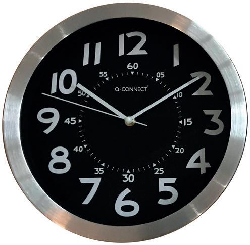 Reloj de pared, diseño moderno y actual. Marco metálico de color cromado. Con números blancos sobre fondo de color negro. Números grandes para una lectura fácil. Mecanismo silencioso. Funciona con 1 pila AA (no incluida). Diámetro: 250 mm. El reloj.