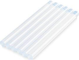 Barra sólida de cola termofusible. Una vez aplicada, endurece en aproximadamente un minuto, dejando pegada la superficie deseada. El blíster o el bote.