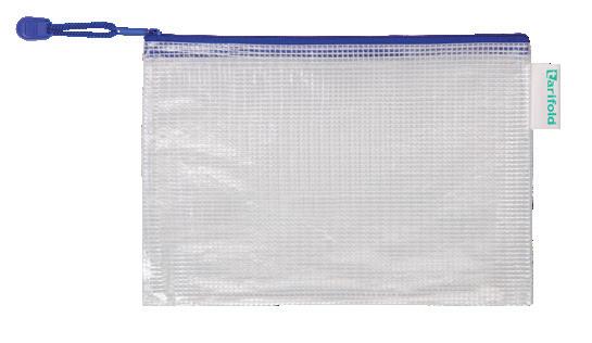 Bolsa multiusos impermeable fabricada en PVC, ideal para guardar pequeños objetos. Ultrarresistente y flexible. Con apertura superior y cierre cremallera. Incluye portabolígrafos y correa con empuñadura para una apertura fácil y rápida. Color transparente y cremallera en color azul. La bolsa.