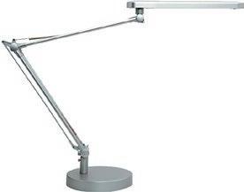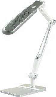 Equipada con led integrado de 5,6W de potencia con una duración de 40 años y 460 lúmenes. Lámpara de oficina con buena eficiencia luminosa: 109 lm/ W. Consume dos veces menos que una lámpara fluorescente. Equipada con un difusor que permite un mejor reparto de la luz. Su brazo tiene 3 articulaciones. Gira 360˚ sobre la base y el cabezal gira en todas direcciones. Consumo energético 4,2 kW cada 1000 horas. El interruptor está en el cabezal. Medidas: 190 x 580 + 460 x 290 mm. La lámpara.