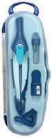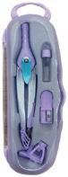 Compás escolar con 2 minas de 2 mm de repuesto. Contiene adaptador universal. Se presenta en estuche de plástico transparente y de color. Colores surtidos: naranja, rosa y verde. Longitud: 13 cm. Diámetro de la circunferencia máxima: 22 cm. El compás.