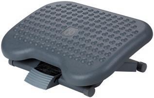 Reposapiés fabricado con plástico 100% reciclado. Mejora la circulación gracias a su superficie efecto masaje. Ajuste de altura de doble posición. Permite estirar las piernas, evita las molestias en la espalda y la incomodidad. Efecto balanceo. Certificado según la norma ISO-9241. Medidas: 447 x 95 x 333 mm. El reposapiés.