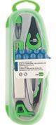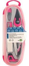 Compás con sistema de bloqueo de los brazos para trazar los círculos. Contiene abrazadera universal y tubo de minas de 2 mm (HB). Con protector de punta. Longitud: 13 cm. Color surtido. Diámetro de la circunferencia máxima: 30 cm.