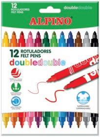 Rotulador de doble punta. Tú eliges: punta gruesa (4,5 mm) o punta media (2,8 mm) con un mismo rotulador. Colores brillantes. Superlavable. La caja.