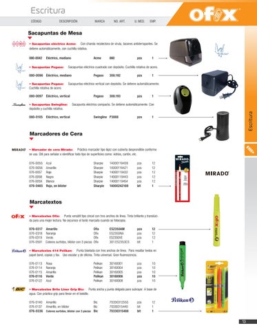 Marcadores de Cera PrĂĄctico marcador tipo lĂĄpiz con cubierta desprendible conforme se usa. Ăštil para seĂąalar o identificar todo tipo de superficies como: vidrios, cartĂłn, etc. t .BSDBEPS EF DFSB .JSBEP