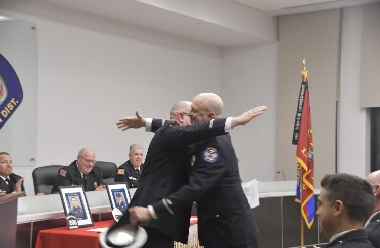 Lastly, Commissioner Kraemer administered the Lieutenant Oath of Office to Engineer Steve Prohaska. His son Ryan pinned his badge and his friend Lieutenant Andrew Hufnagl delivered his conferment speech.