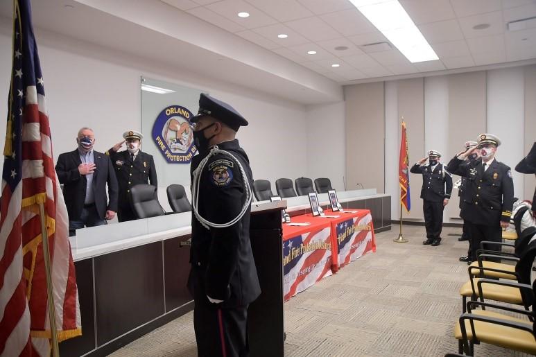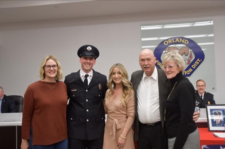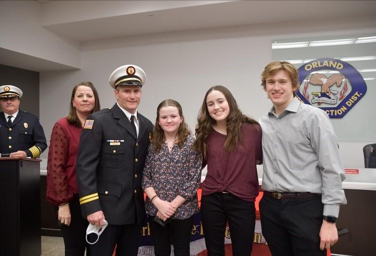 On Wednesday, February 2, 2022, the OFPD held a promotional ceremony. Fire Commissioner Glenn Kraemer administered the Engineer Oath of Office to Firefighter Marc DeSardi. Marc's girlfriend Francesca Villare pinned on his badge while his family looked on.