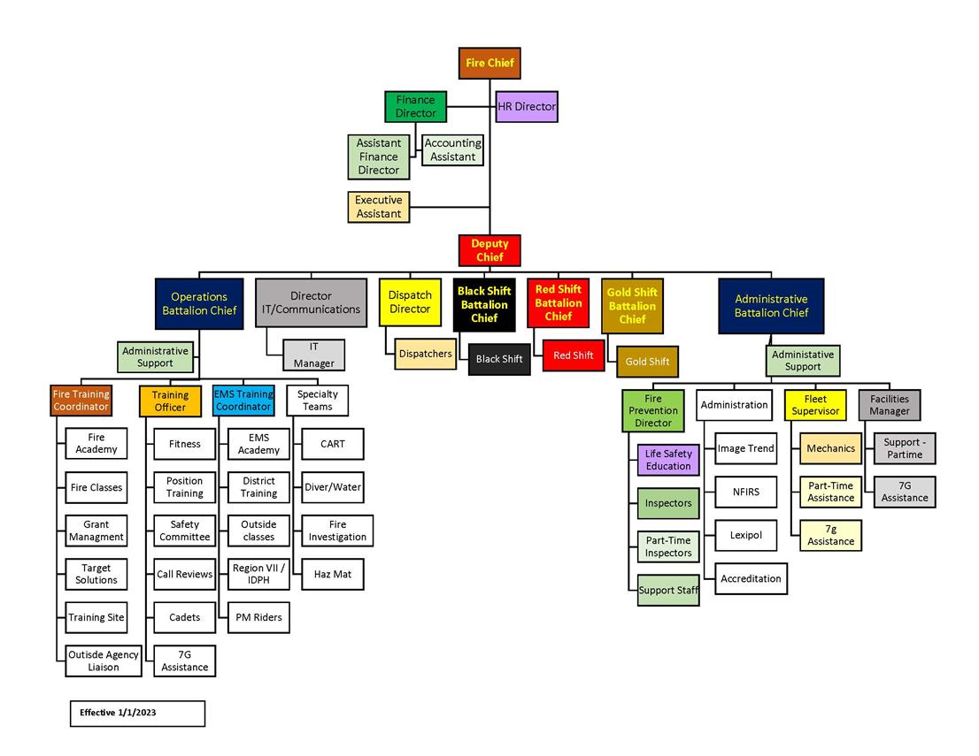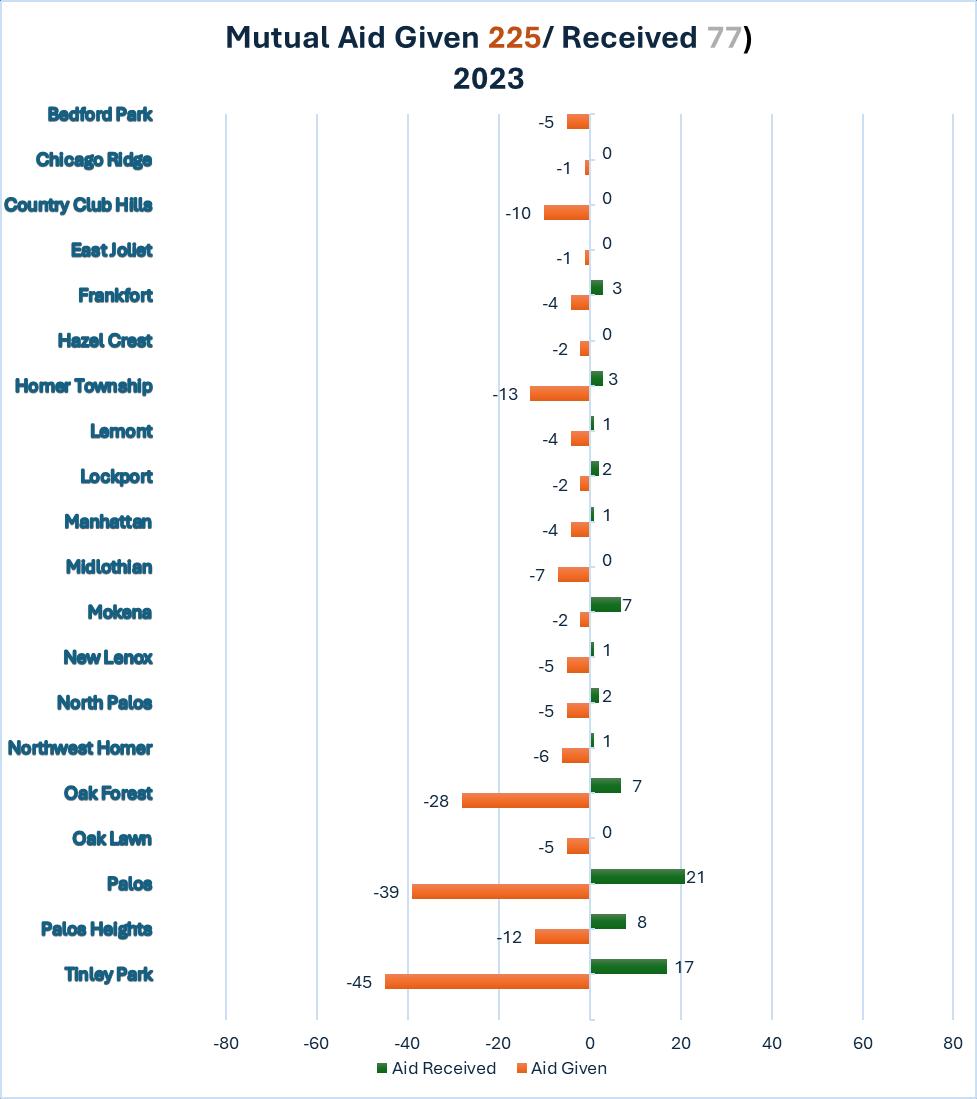 2023 was another busy year in the fire district closing in on 13,000 calls for service and making us the busiest fire district in the State of Illinois. The success of our district lies with the Board of Trustees in providing us the needed equipment, policies and staffing, combined with the commitment of the men and women of our fire district. No one operates at the level we do. Our training is second to none and not just fire training, but EMS Training and Special Operations Training, such as Haz-Mat, Water Rescue, and Technical Rescue.