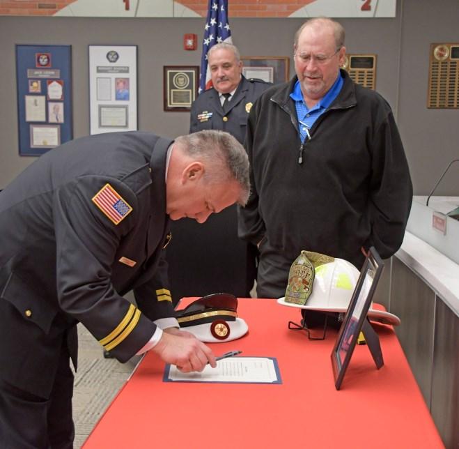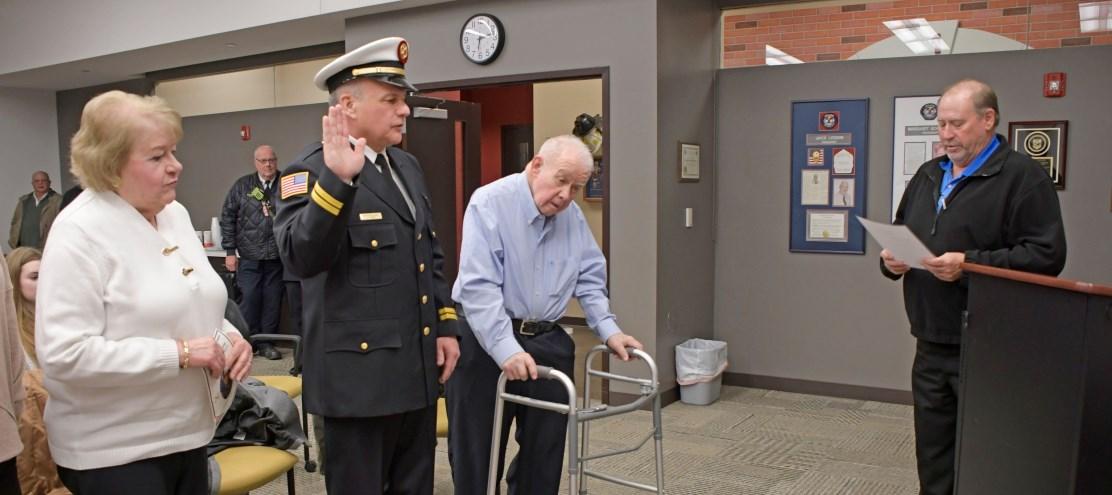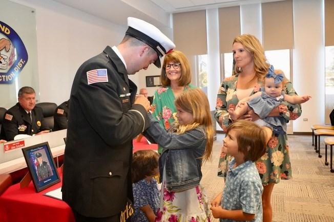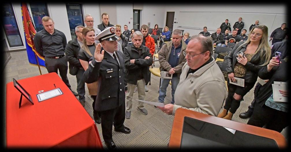 Congratulations Battalion Chief Jim Hynes, who was administered his Battalion Chief Oath of Office by Board of Fire Commissioners Chairman Matt Rafferty at a ceremony held Wednesday evening, March 22, 2023. Jim's dad, a retired Chicago Battalion Chief, pinned his badge, and his friend, OFPD Battalion Chief Erick Johnson delivered his conferment speech. Congrats Jim!