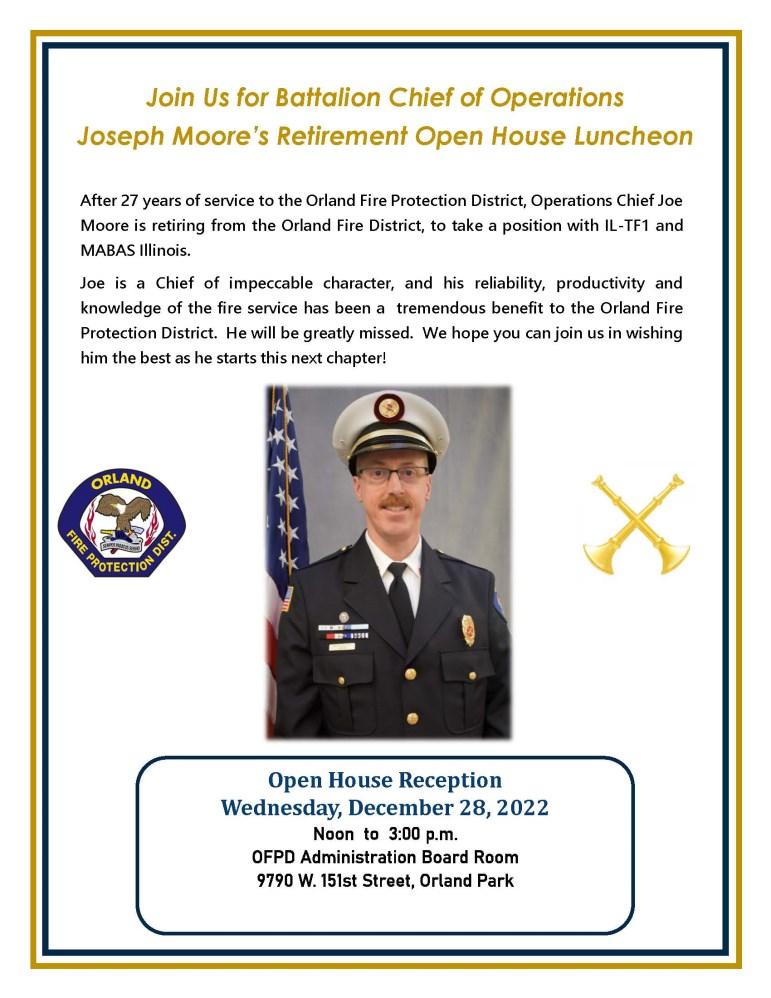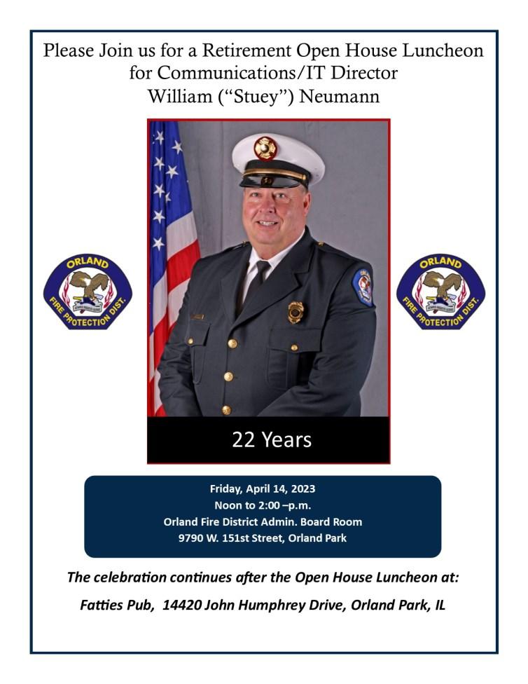 I wish to personally thank the members of IAFF L2754 for their continued support in making this district what it is today, and Local 134 for their commitment in providing the professional 911 dispatching to Orland and the communities we serve. To our staff, from administration, fleet, facilities, HR and finance, no one works harder then these people do to keep the fire district at the level we have achieved.