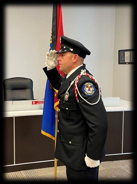 In 2023, the Orland Fire District Honor Guard consisted of 14 members, with several of those members also being involved with the AFFI State Honor Guard. The mission of the Honor Guard is to preserve the honor of fallen firefighters, and to post colors for promotional ceremonies and special district functions. Some of these ceremony's included the 25th anniversary of the line-of duty death of Battalion Chief William Bonnar Sr. on February 25th, awards night on March 29th, and the 9/11 Memorial held at Administration on September 11th. In addition, the Honor Guard posted colors at five promotional ceremonies that occurred on February 16th, March 22nd, April 6th, July 26th, and August 30th. The Honor Guard also participated in the Class of 2022's swearing in on April 18th for twelve members who completed their probationary period. To prepare for these events, Orland Honor Guard Members participated in several drills held throughout the AFFI Honor Guard’s 4th District. Attending these drills assures that Honor Guard members are proficient with drill and ceremony, such as marching and posting of colors. The Honor Guard looks forward to attending a wide range of activities in 2024 and will always continue to recruit new members for the Honor Guard.