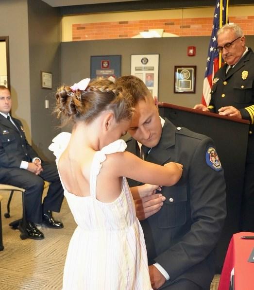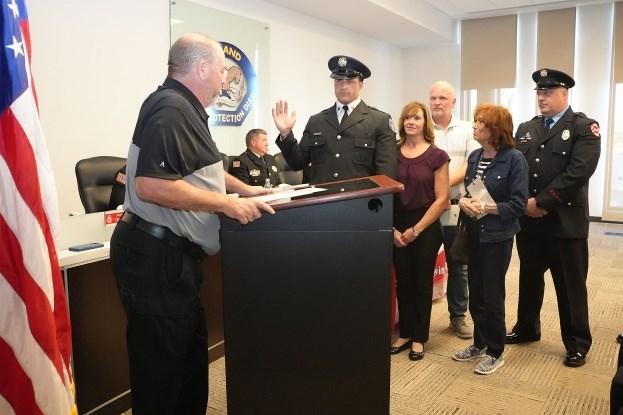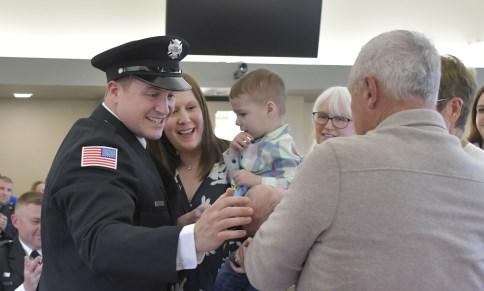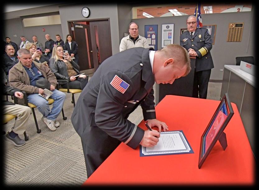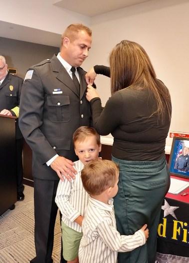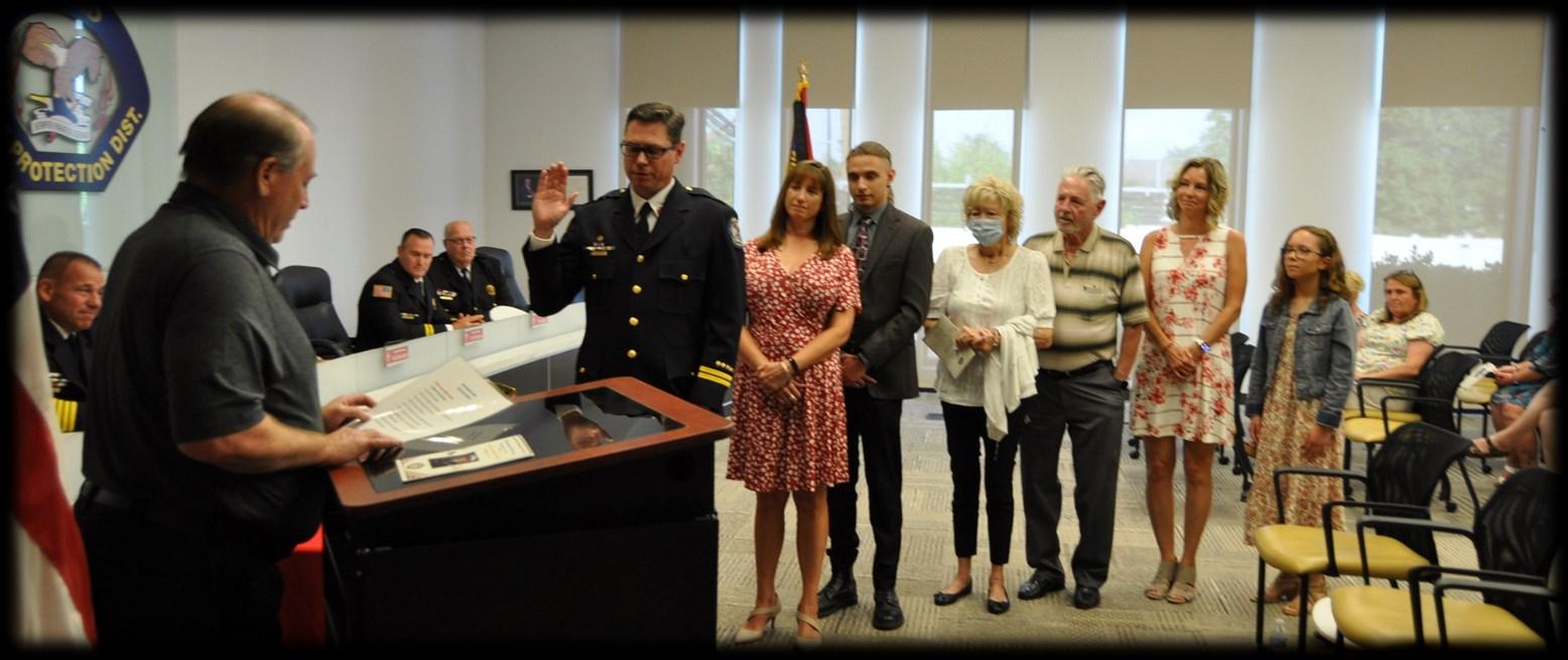 On Wednesday, July 26, 2023, Fire Commissioner Matt Rafferty administered the Battalion Chief Oath of Office to Nick Tufts. His wife Christine and son Ben pinned his badge while his extended family looked on. Chief Schofield spoke of all the wonderful qualities he has that make him a great addition to the Command Staff, and his friend, D/C Chris Bednarek, delivered his conferment speech. Congrats Nick!