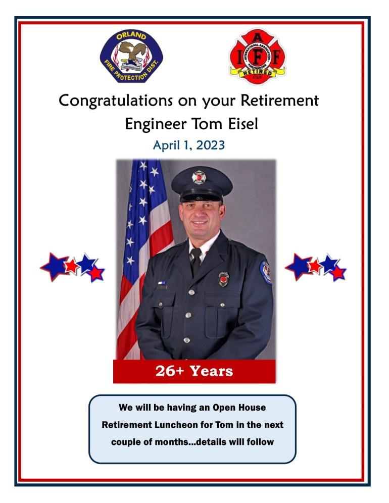Secretary Schmidt served a 6-year term and before that, was a Fire Commissioner for the Orland Fire District. We thank him for his many dedicated years of service.