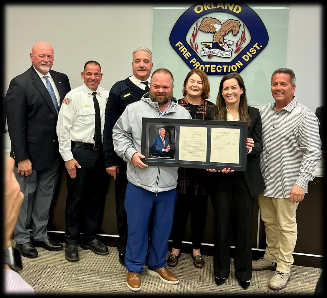 While serving as the Orland Fire District Attorney for 12 years, Attorney Roche made significant contributions for the betterment of the Orland Fire District that Chief Schofield outlined in greater detail.