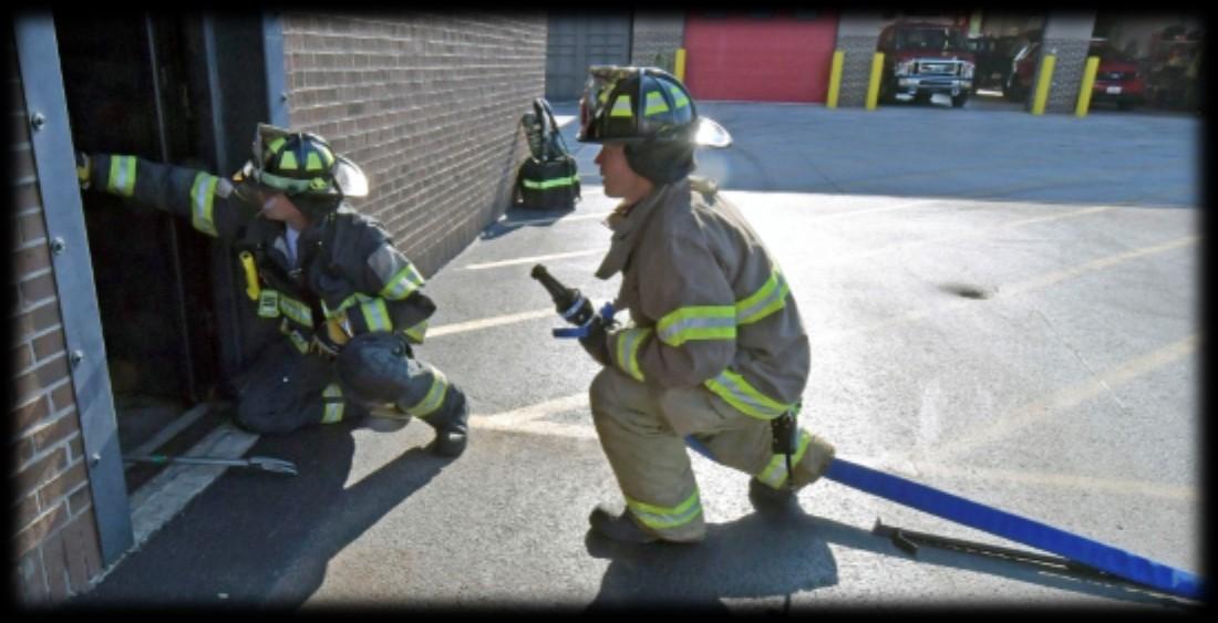 As part of the new recruit training, candidates were led through hose evolutions. The instructors taught them through lead outs, forcible entryand hose advancement at the training facility. Shown are the advancement to the door, checking for entry and the repacking of hose. These evolutions were practiced several times to give each candidate the opportunity to be at different parts of the exercise.