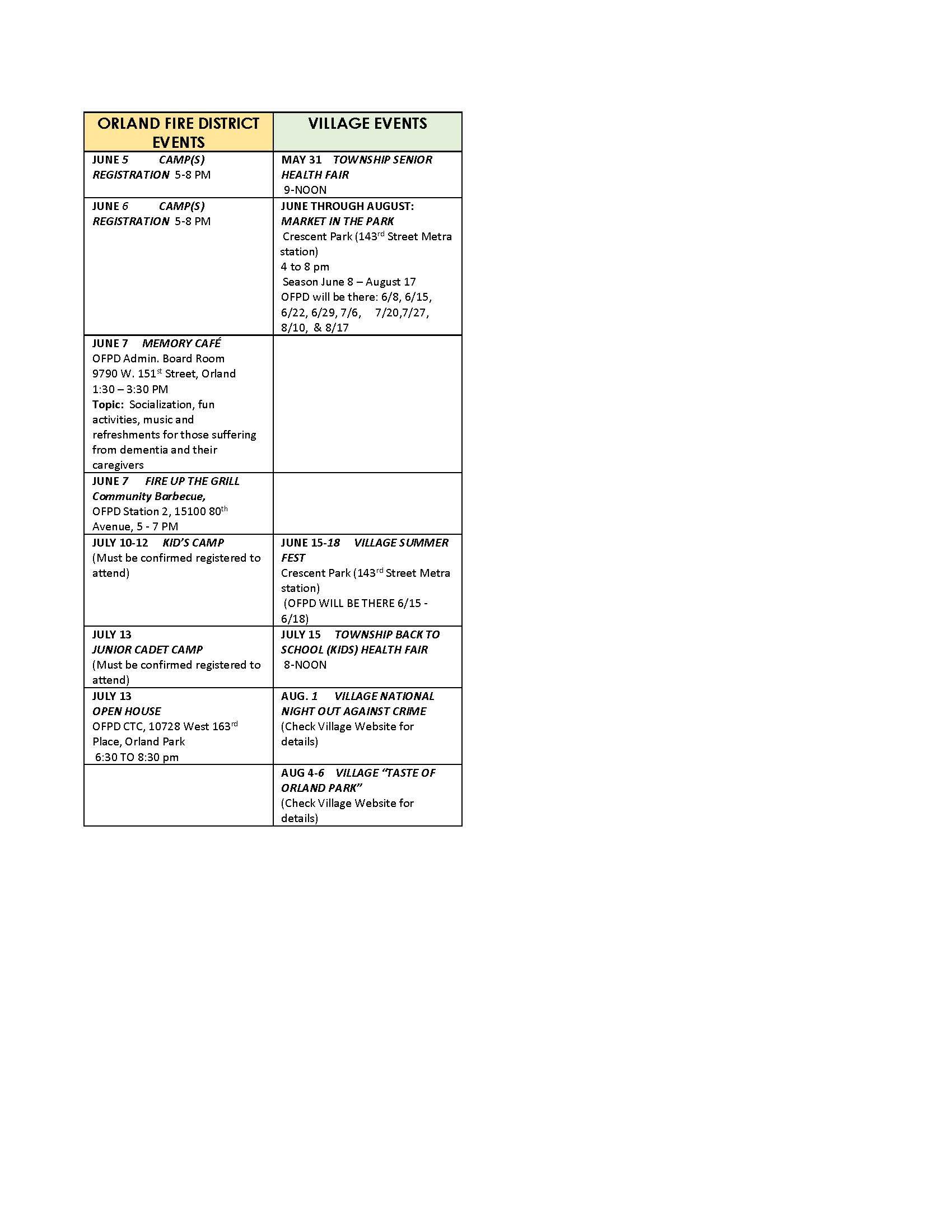 Be sure to check Orland Fire and the Village of Orland Park’s websites for updated information, additions, etc.