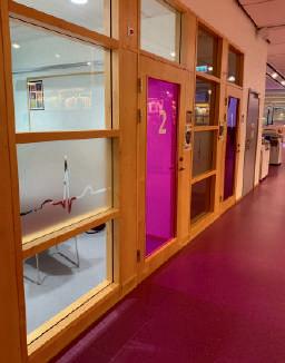 I bibblan finns det många ställen man kan vara på! Finns även en zon som kallas för ”tysta zonen”. Rekommenderas till de som vill ha det helt tyst när de pluggar. De bilder med siffror behöver man boka innan då det är grupprum, vilket man enkelt kan göra via KI:s hemsida.