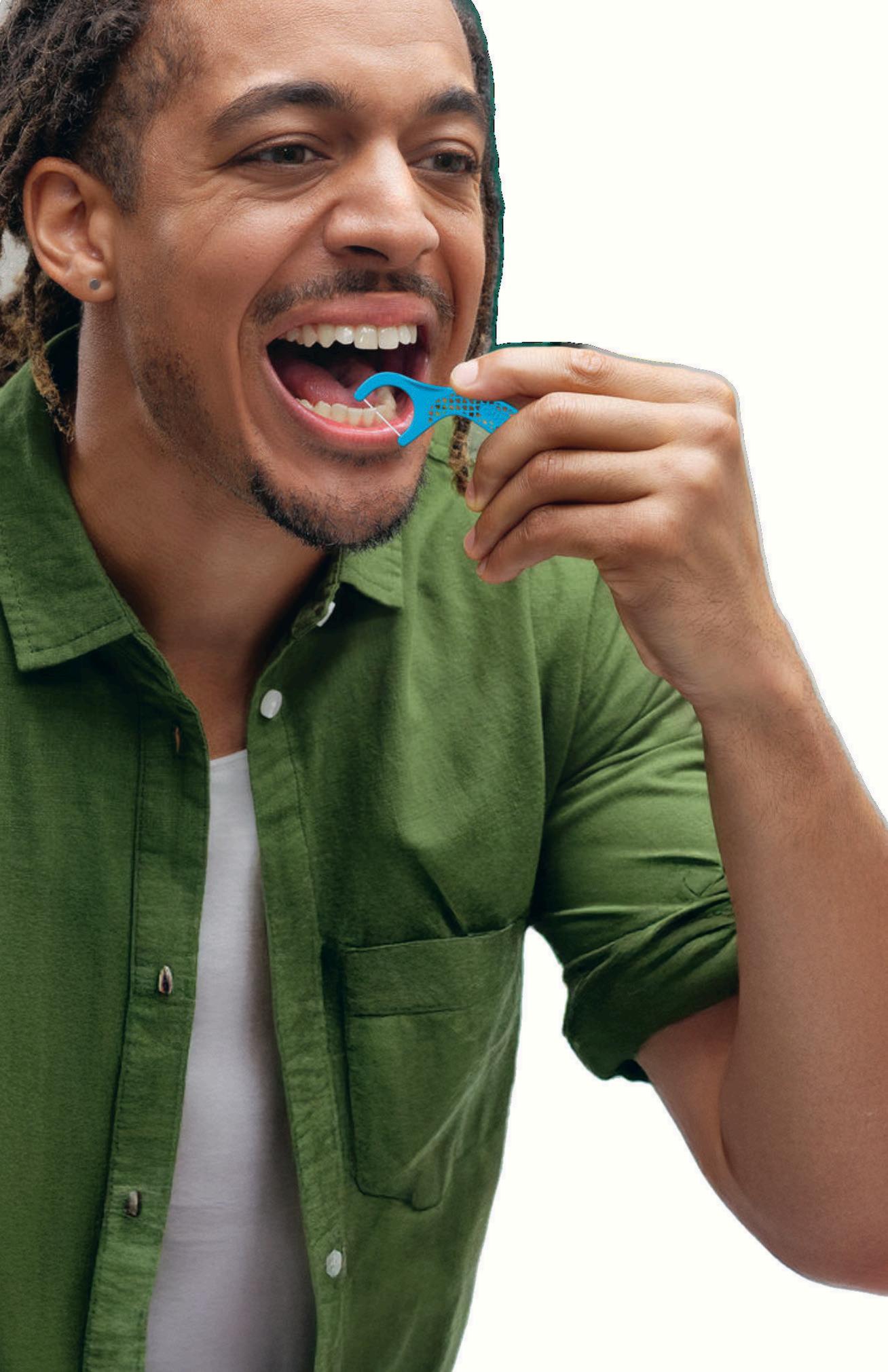 GUM® EASY-FLOSSERS har en slitstark tråd som är fluor- och E-vitaminbelagd Det ergonomiska handtaget gör den enkel att använda, och den friska mintsmaken ger en ren och fräsch känsla.