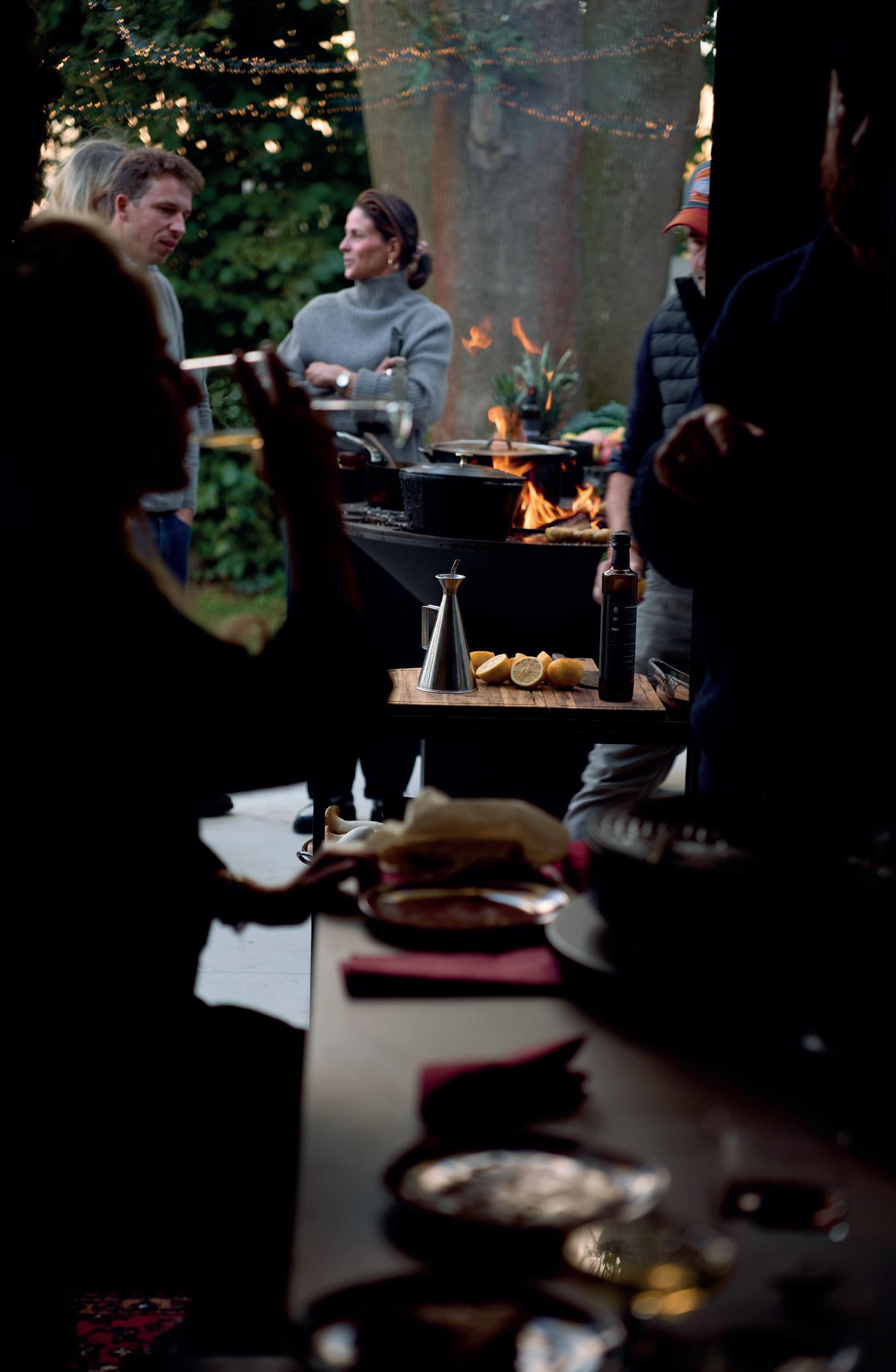 Sofie is very aware of the role the open fire plays in the outdoor cooking experience. “The fire brings something special to the table,” she says. “It symbolizes connection, both with nature and with the people around you. During photoshoots, I try to capture that interaction. It’s important that the image doesn’t only show the dishes but also the atmosphere of being together.”
