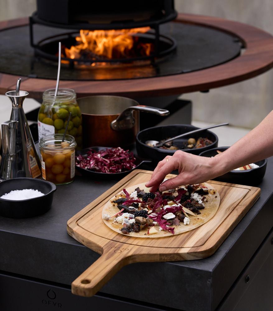At its core, OFYR is all about simplicity. The strength of its design lies in its versatility - it seamlessly combines functionality, beauty, and ease of use. The cooking surface of OFYR - the signature ring-shaped plancha - is heated by the fire and efficiently retains heat for extended cooking sessions. This allows for a wide variety of dishes to be prepared, from tender steaks and grilled vegetables to delicate pancakes and even desserts.