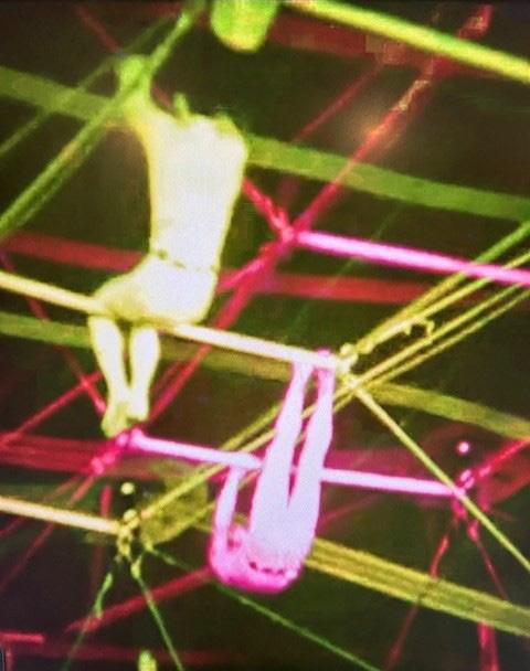 Pintura acrílica sobre cartón, cordel, materiales reciclados 22 x 18 pulgadas