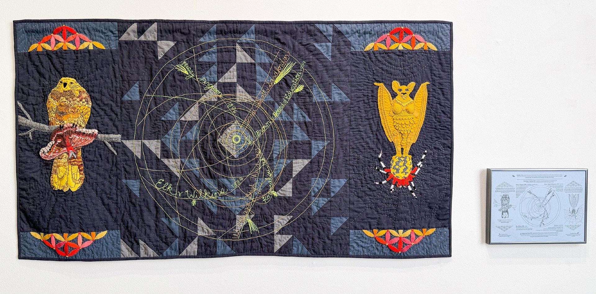 Aplicación de lana, bordado, costura y acolchado a mano, costura a máquina, algodón, hilos fluorescentes, que brillan en la oscuridad y de algodón (con infografía impresa en tipografía enmarcada de 12" x 9")