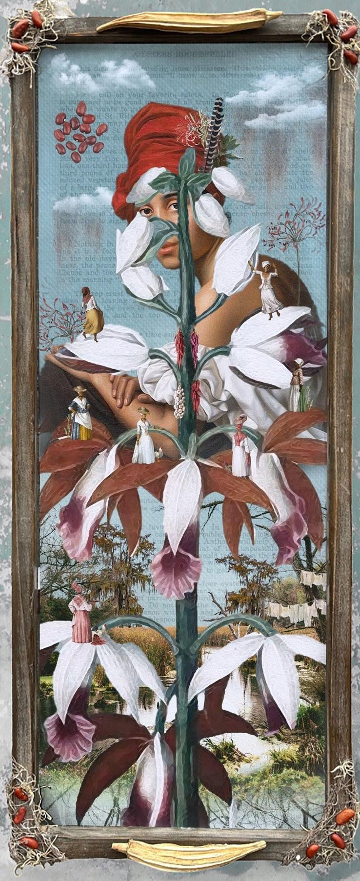 Y, sin embargo, esta melodía y las obras que aquí se reflejan también resultan a veces inquietantes, incluso espeluznantes, como un paseo solitario de vuelta a casa a altas horas de la noche, pasando por edificios adormecidos y ramas bostezantes, por callejuelas y entre charcos pavimentados que se agitan con tristeza. Pero ese viaje y esa sensación de añoranza siempre implican lo contrario: nuestro destino colectivo. ¿Hacia qué fin se dirige este anhelo, este deseo, esta impaciente oda de amor por Nueva Orleans? Percibo una claridad absoluta en las poderosas, profundamente bellas y complejas obras de arte que aquí se comparten. Estos himnos de alabanza, acción de gracias y triunfo hablan de esperanza, de un sentido creciente de desarrollo humano, de una marea ascendente de amor y alcance. Se extienden hacia la colectividad y la comunidad, siempre hacia adelante, fluyendo hacia la brecha, culminando en una exuberante sensación de alegría colectiva incesante. Crecemos juntos como uno solo.