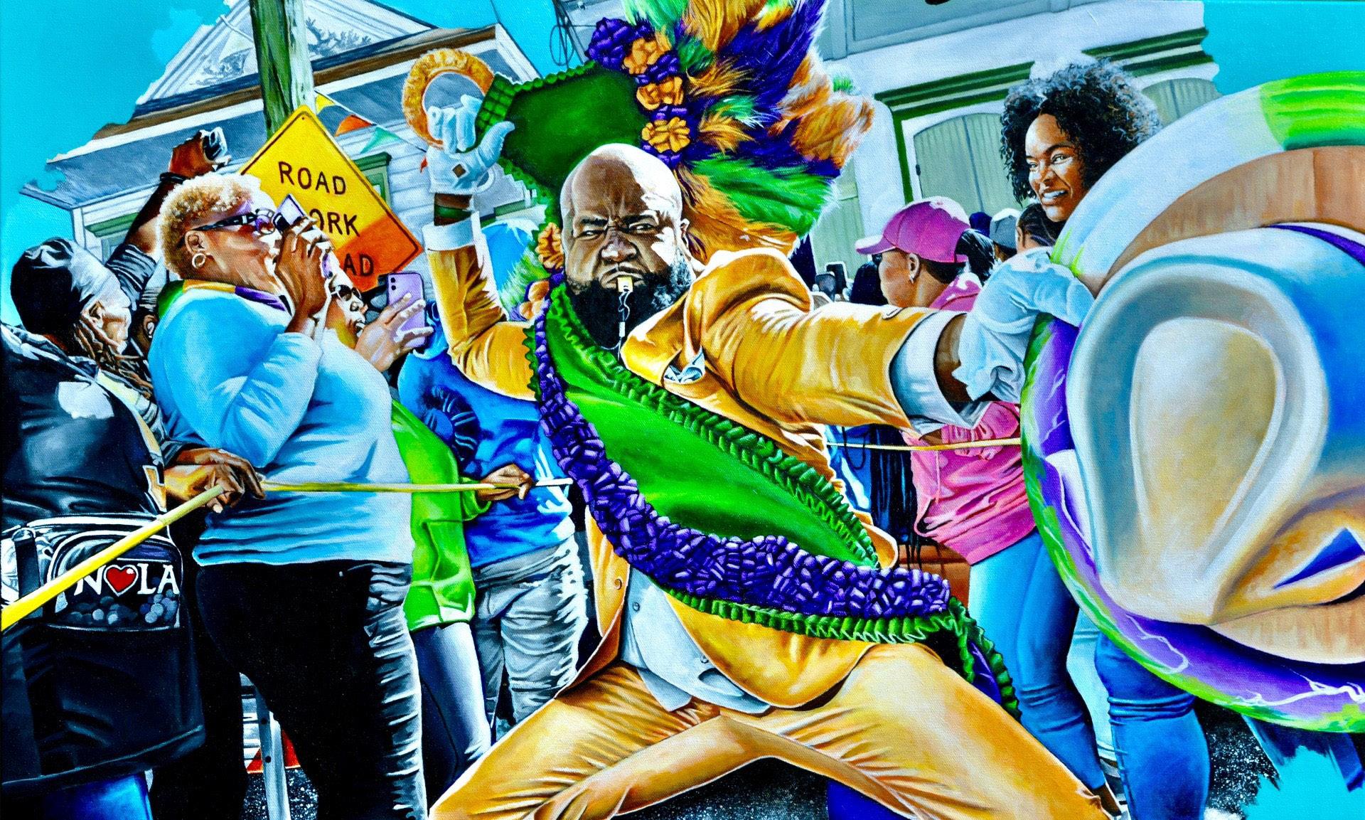 Al enfrentarme al enorme honor de seleccionar las obras de arte de este año entre las casi 1500 solicitudes presentadas, no dejaba de tararear una melodía que me llevó al subtítulo y tema (no oficial) de la exposición: "Canción de Amor a Nueva Orleans". Esta emocionante canción del álbum de 2017 de Chief Xian aTunde Adjuah, Ruler Rebel, es una impresionante oda a su ciudad natal, que expresa a la perfección la generosidad acogedora de Nueva Orleans y del estado de Luisiana, así como la sensación eléctrica de inspiración y emoción que me invade cada vez que la visito.