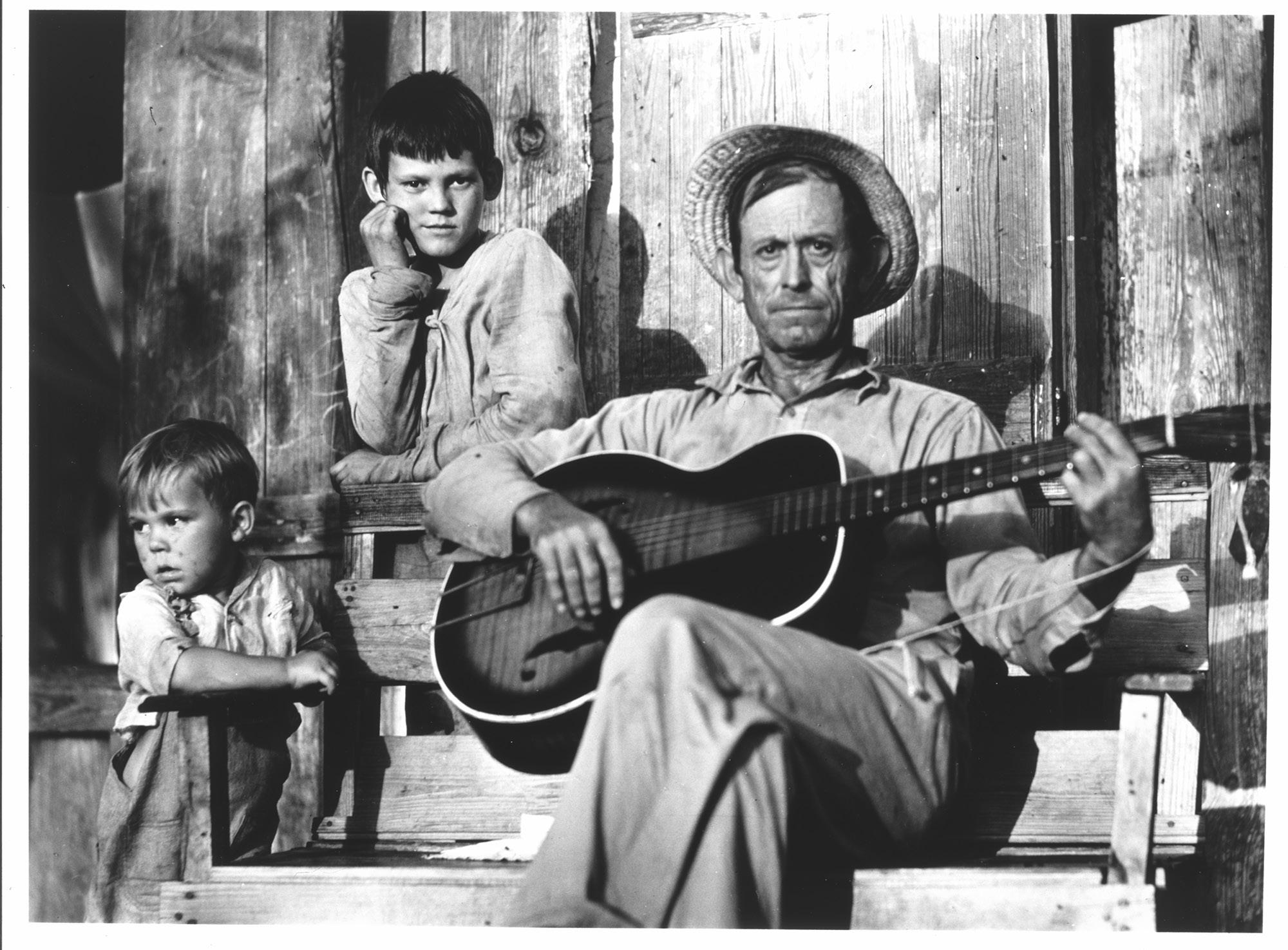 Marion Post Wolcott Hombre tocando la guitarra en el porche, Natchitoches, Luisiana 1940