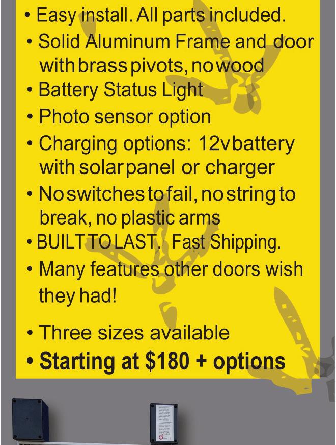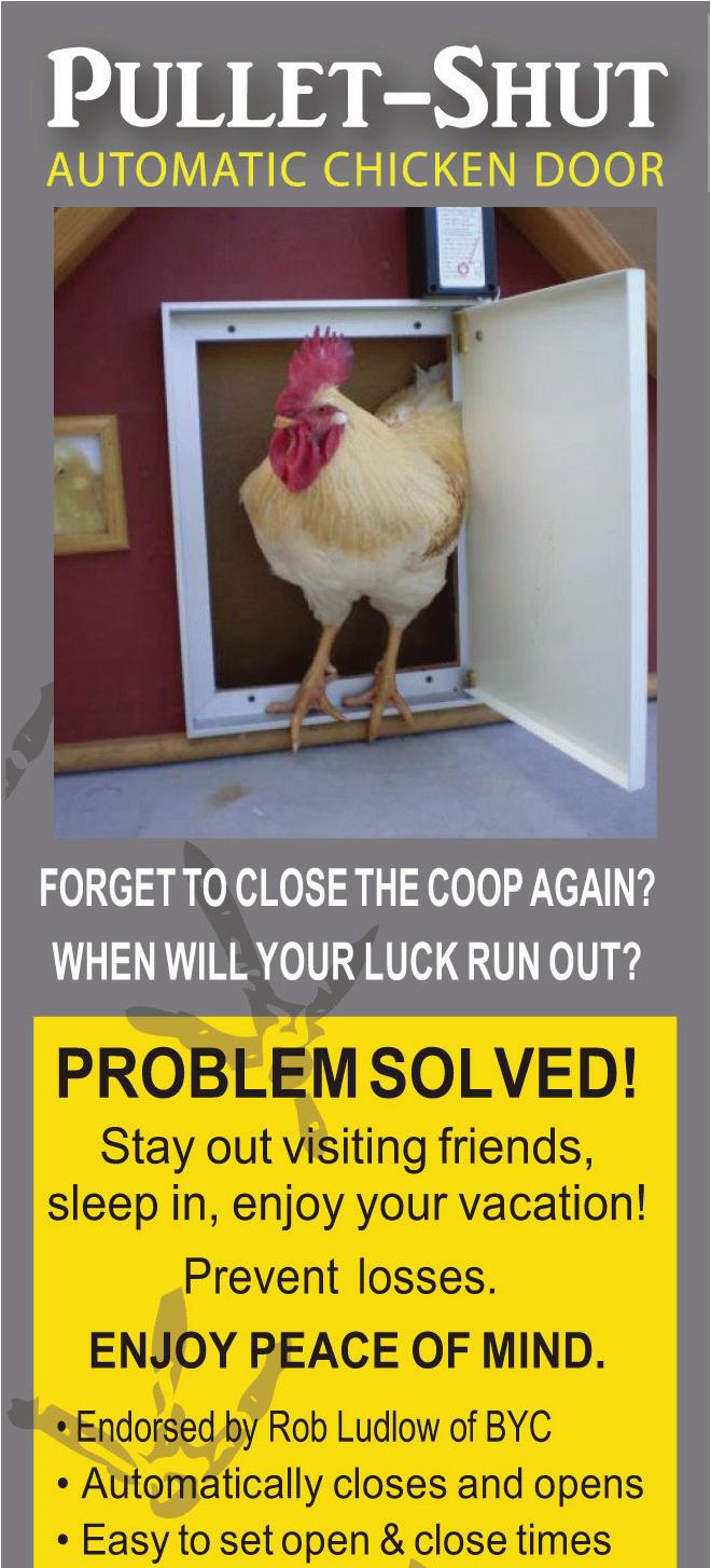 Go to www.chickendoors.com for the best automated door on the market or call 512-995-0058.