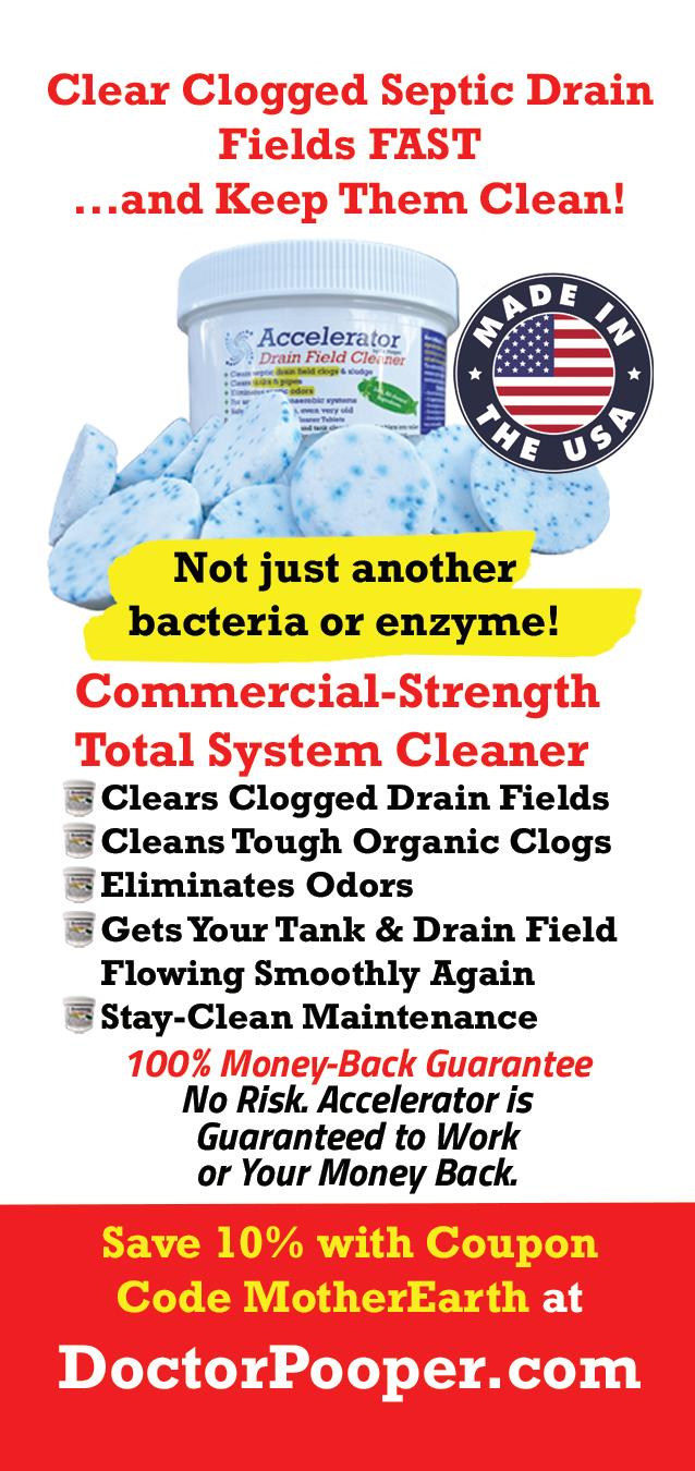 Drain Field Cleaner is a revolutionary non-toxic commercial-strength septic treatment that clears organic solids from septic tanks and drain fields. Money-back-guarantee! Order at DoctorPooper.com