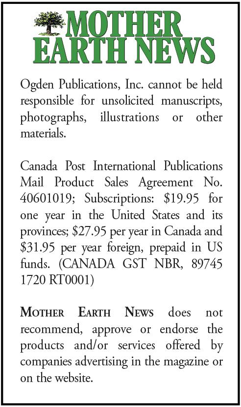 Order by calling 800-234-3368 or visiting Store.MotherEarthNews.com
