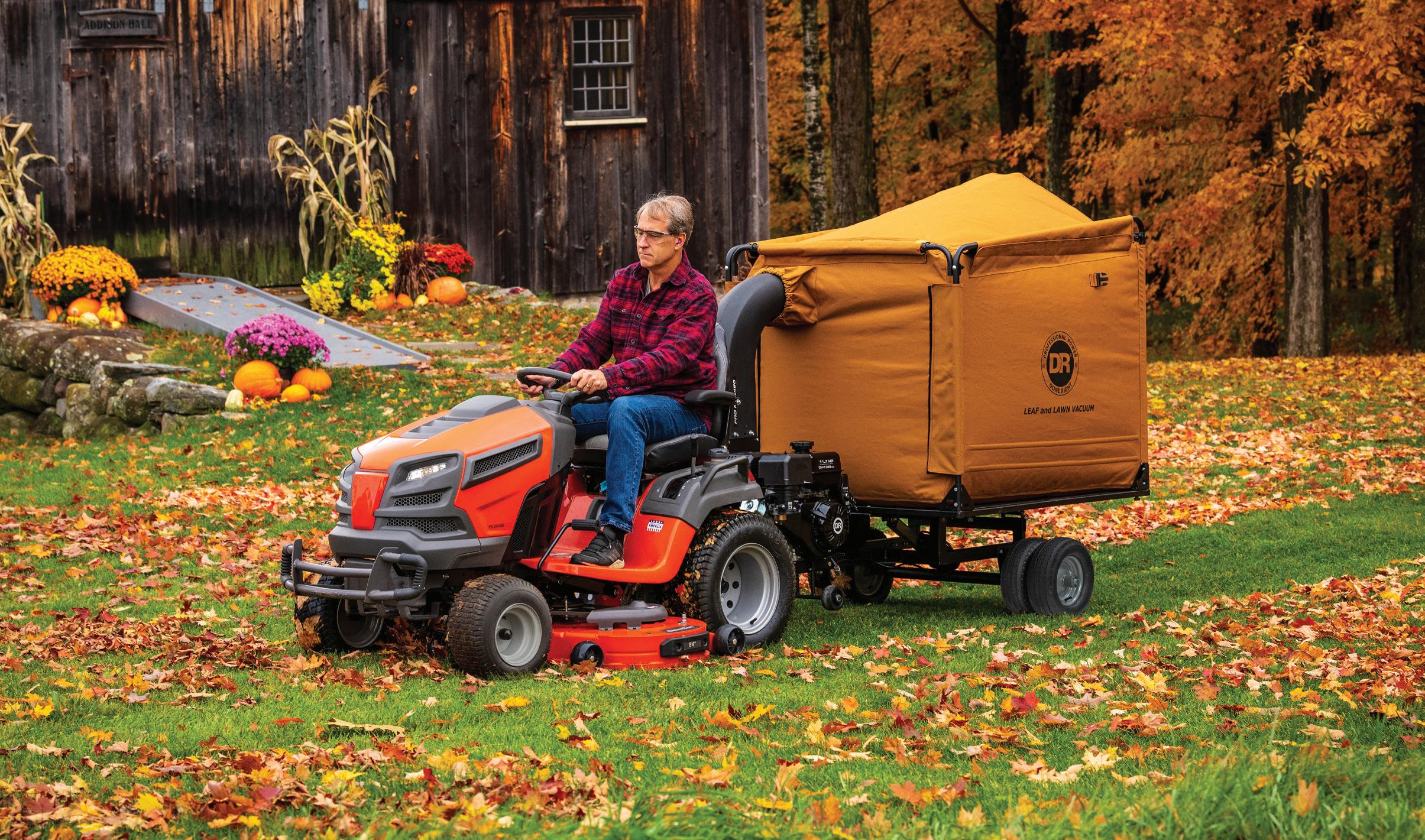 • Collects & mulches up to 50 lbs of leaves