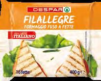4 Scegli FORMAGGIO FRESCO PHILADELPHIA ORIGINAL 250G 2 49 9.96 €/Kg FORMAGGIO FUSO A FETTE FILALLEGRE DESPAR 400G 2 19 5.47 €/Kg PASTA FRESCA RIPIENA FINI ANTICA BOTTEGA VARI TIPI 250G 2 49 9.96 €/Kg SNACK DI PARMIGIANO REGGIANO PARMAREGGIO 20G X5 1 99 19.90 €/Kg WURSTEL 100% POLLO E TACCHINO AMADORI 250G 1 19 4.76 €/Kg DANACOL DANONE VARI GUSTI 100G X4 2 69 6.72 €/Kg YOGURT GRECO 0% BICOMPARTIMENTALE DESPAR VARI GUSTI 150G 0 89 5.93 €/Kg PANNA DA CUCINA DESPAR 200ML 0 79 3.95 €/Kg FORMAGGIO DOLCE A PASTA FILATA DESPAR 270G 2 29 7.63 €/Kg HAMBURGER AL PROSCIUTTO COTTO/ COTTO E MOZZARELLA DESPAR 150G 1 49 9.93 €/Kg DESSERT IN TAZZINA SENZA PECCATO LIMONCELLO/ CREMA CAFFÈ 40G 1 29 32.25 €/Kg PINSA PREMIUM 230G X2 2 99 6.50 €/Kg YOGURT PARMALAT ALLA FRUTTA MAGRO/ INTERO/ INTERO CON PEZZI DI FRUTTA/ SENZA LATTOSIO ZYMIL 125G X8 2 59