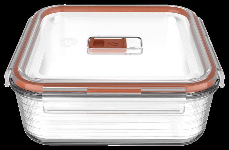 Linea MasterChef FreshMax: contenitori in vetro, perfetti per la cottura in forno, per conservare i cibi in frigorifero e in congelatore e per riscaldare in microonde con il coperchio, grazie alla valvola di rilascio del vapore. Coperchio ermetico. Contenitori lavabili in lavastoviglie.