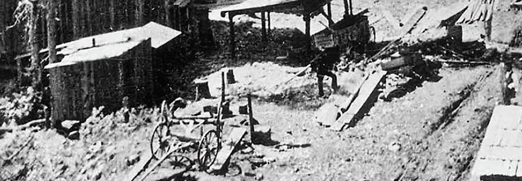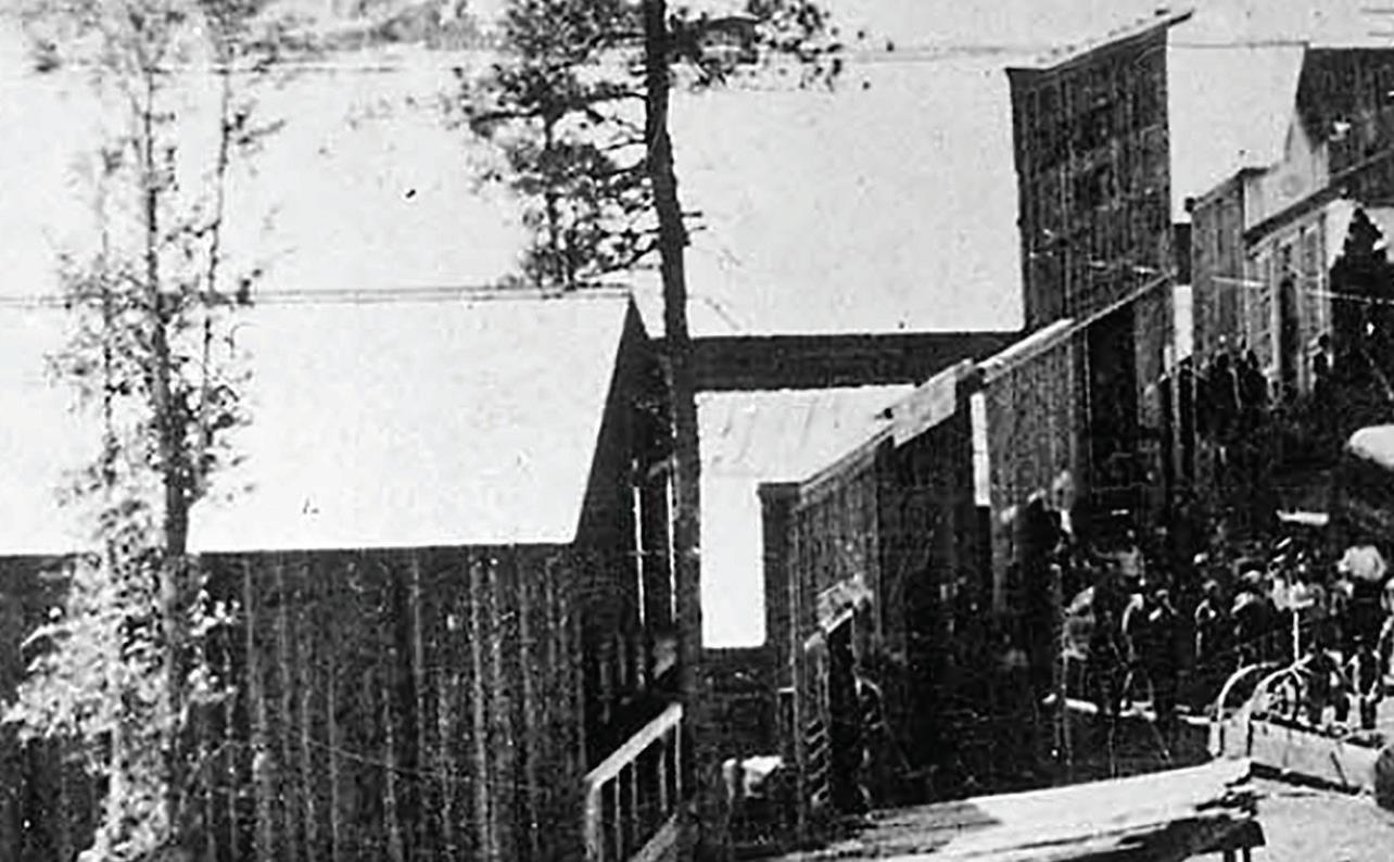 “Four hundred buildings have been erected, and every lot on the town site has the foundation of some sort of structure laid on it. There are four regular saloons, where a bad quality of whisky is retailed, and six stores, where you can buy groceries, clothing, canned fruits,
