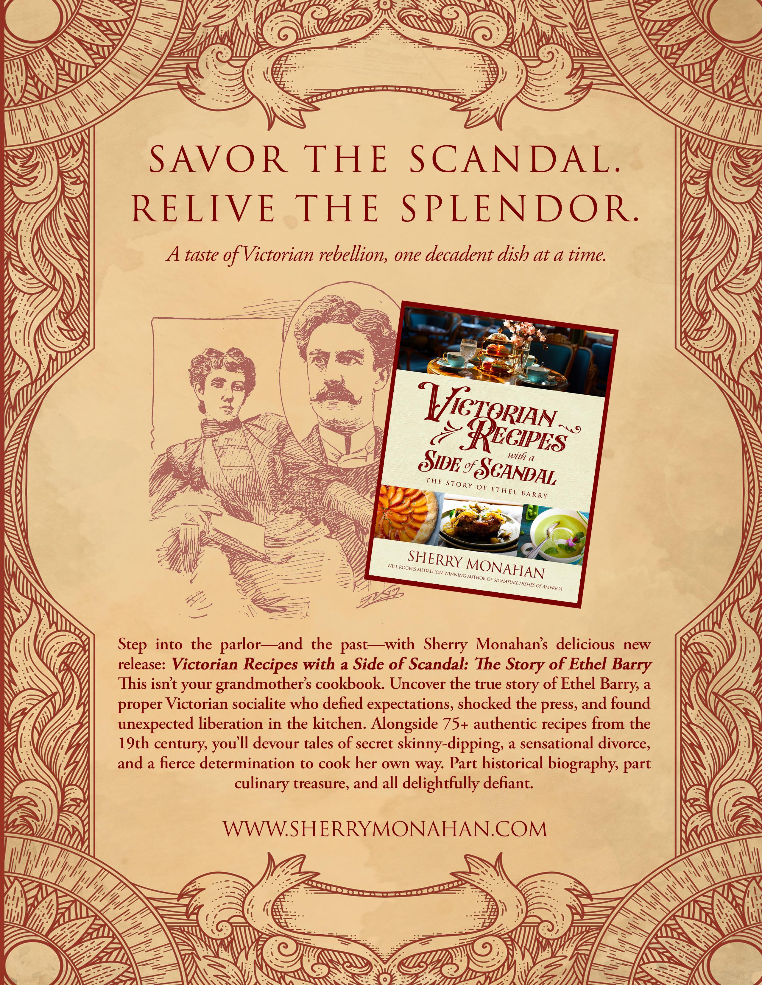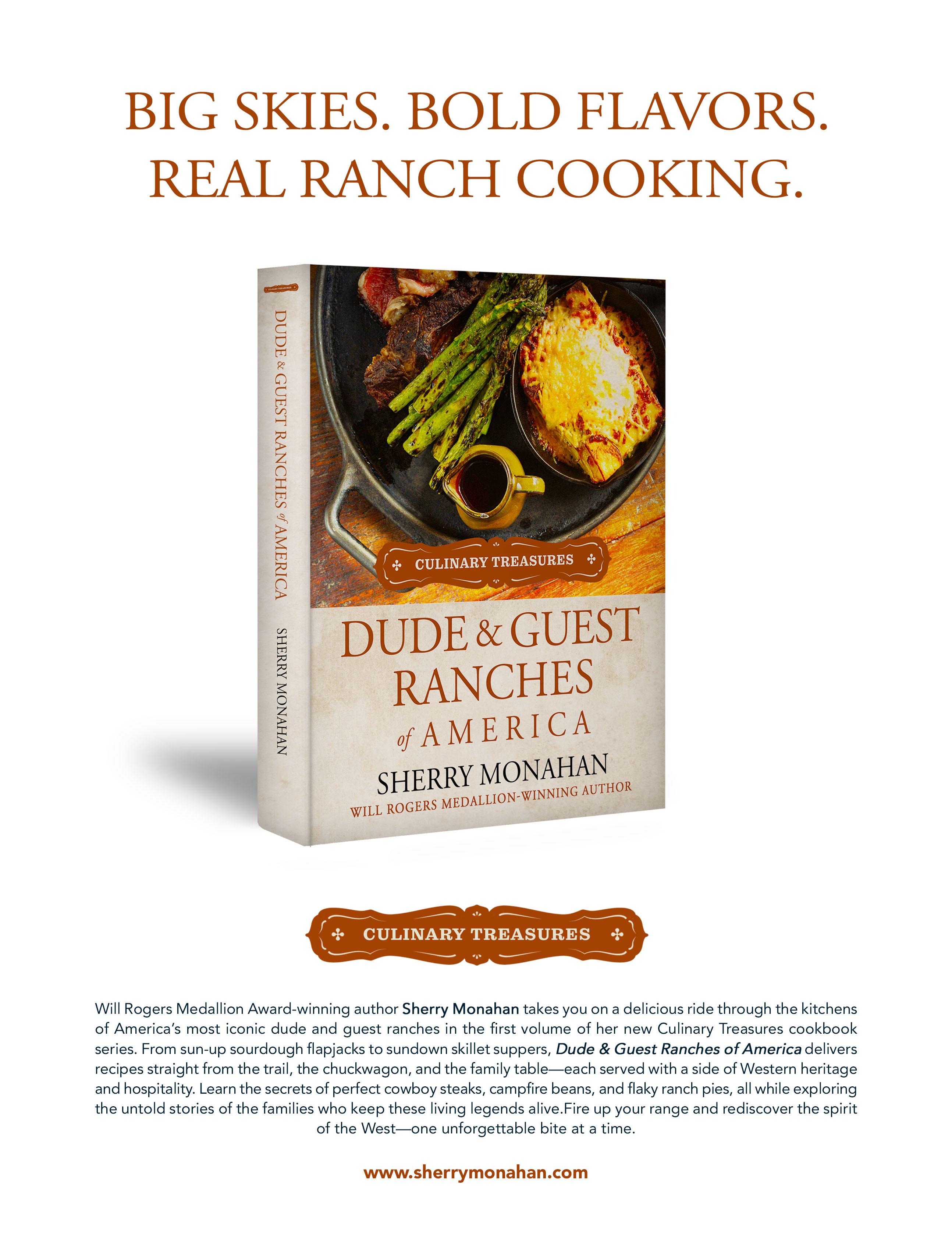 Sherry Monahan is an award-winning culinary historian who enjoys researching the genealogy of food and spirits. While there’s still plenty to explore about frontier food, she’s expanding her culinary repertoire to include places and foods from all over America and beyond. She holds memberships in the James Beard Foundation, the Author’s Guild, and the Wild West History Association. She is also a professional genealogist, and an honorary Dodge City marshal. Her newest cookbook, Culinary Treasures: Dude & Guest Ranches of America, will hit bookstores this Fall, alongside Victorian Recipes with a Side of Scandal: The Story of Ethel Barry, which was released in December.